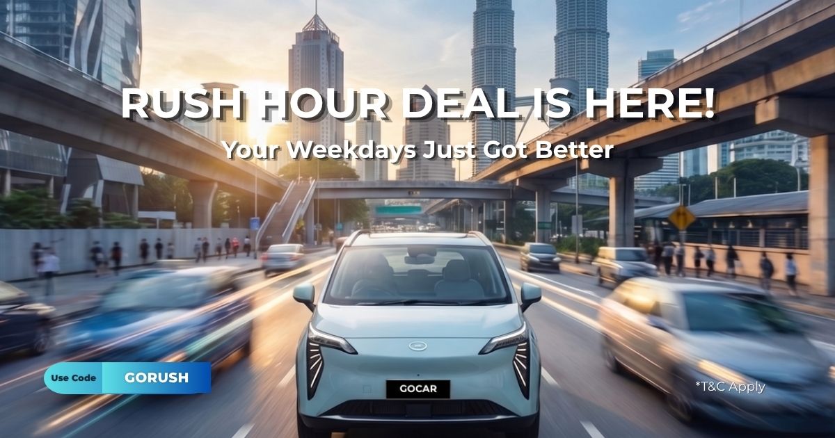 The Rush Hour Deal is now LIVE on GoCar! Save RM10 on every weekday booking — perfect for daily commutes, errands, and everything in between.